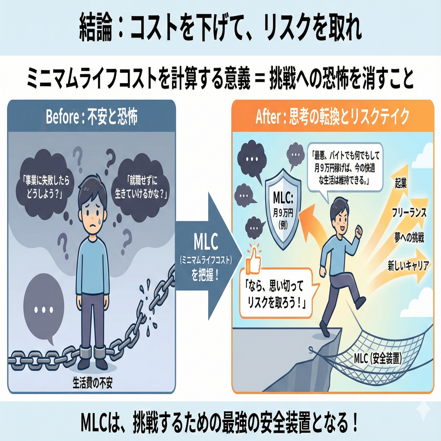 ミニマムライフコストを計算する意義、それは挑戦への恐怖を消すことにあります。